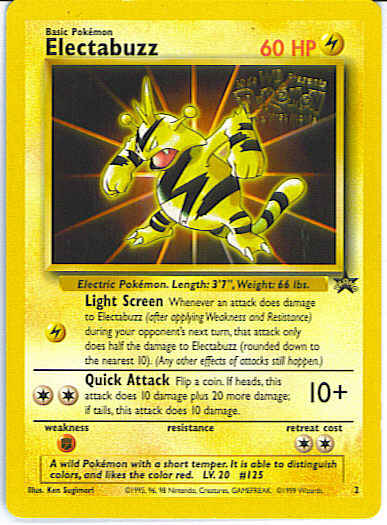 [L] Light Screen - Whenever an attack does damage to Electabuzz (after applying Weakness and Resistance) during your opponent's next turn, that attack only does half the damage to Electabuzz (rounded down to the nearest 10). (Any other effects still happen.)