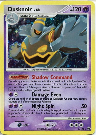 Evne [CP] Damage Even - Count the number of damage counters on Dusknoir. Put that many damage counters on 1 of your opponent's Pokemon.