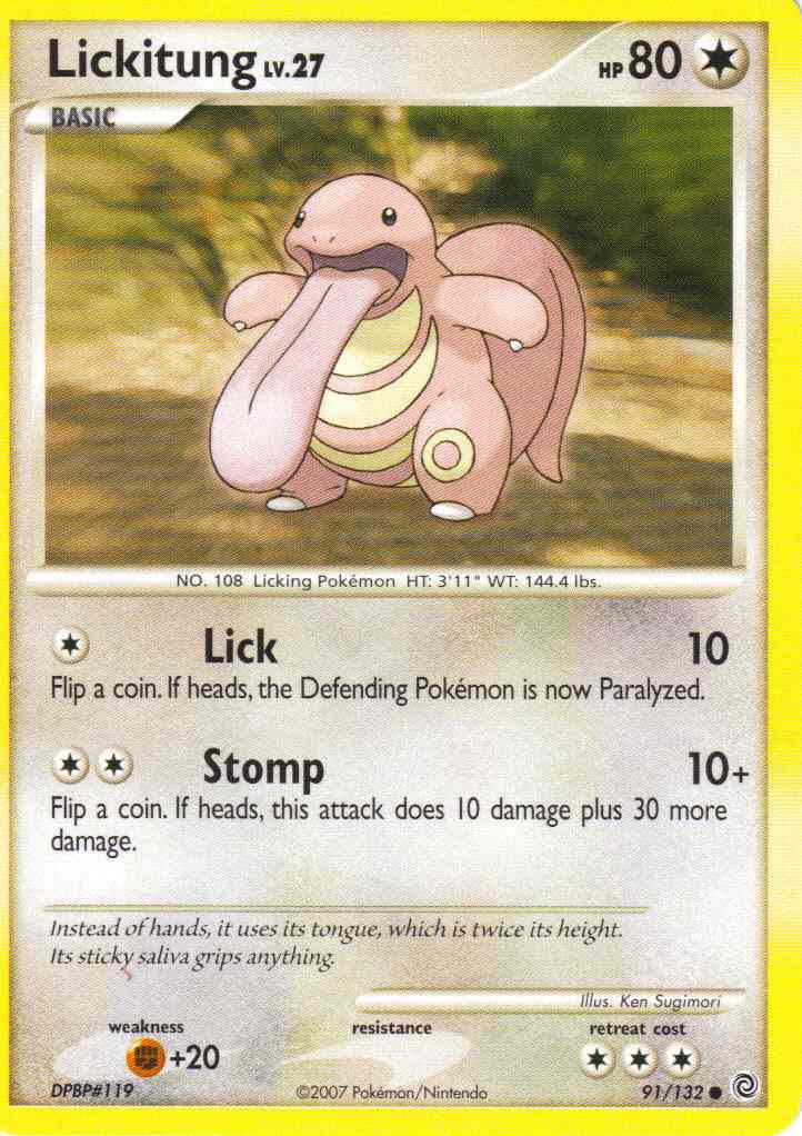 Evne [C] Lick (10) Flip a coin. If heads, the Defending Pokemon is now Paralyzed.