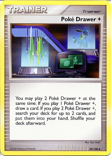 You may play 2 Poke Drawer + at the same time. If you play 1 Poke Drawer +, draw a card. If you play 2 Poke Drawer +, search your deck for up to 2 cards, and put them into your hand. Shuffle your deck afterward.