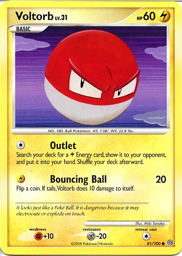 [L] Bouncing Ball (20) Flip a coin. If tails, Voltorb does 10 damage to itself.