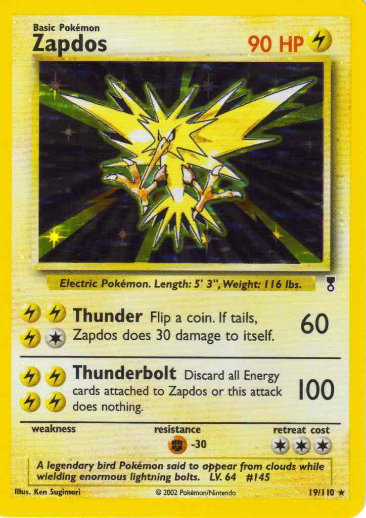 Evne [CLLL] Thunder (60) Flip a coin. If tails, Zapdos does 30 damage to self.