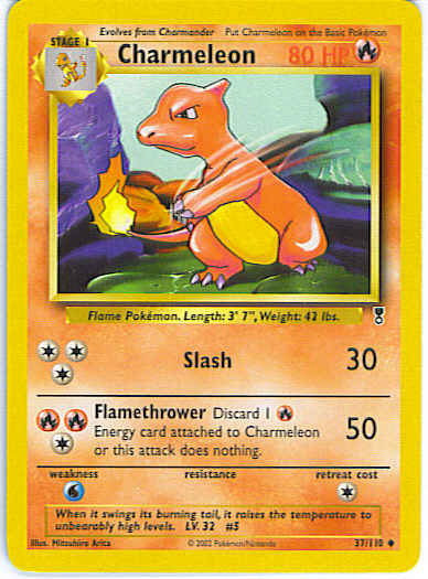 Type | Fire | Pokemon serie | Legendary Collection | Stadie | Stage 1 | HP | 80 | Sjældenhed | Uncommon | Tilbagetrækning | 1 | Svaghed | W | Kortnummer | 37 | Evne |