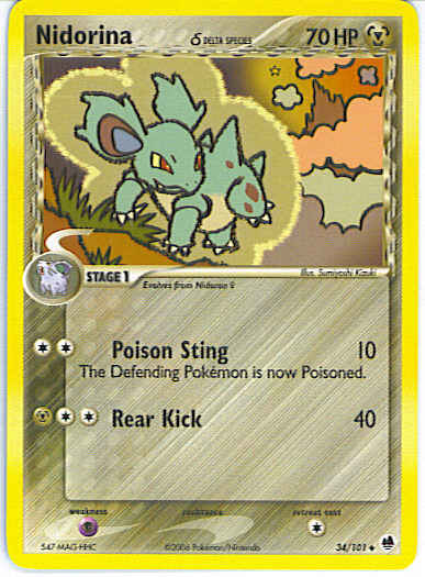 Type | Metal | Pokemon serie | Dragon Frontiers | Stadie | Stage 1 | HP | 70 | Sjældenhed | Uncommon | Tilbagetrækning | 1 | Svaghed | P | Kortnummer | 34 | Evne | [CC] Poison Sting (10) The Defending Pokemon is now Poisoned. [CCM] Rear Kick (40)