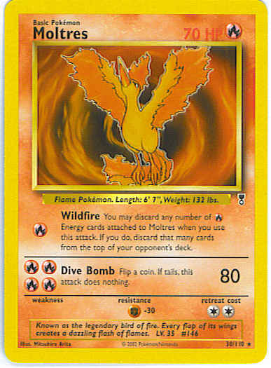 Evne [R] Wildfire - You may discard any number of R Energy cards attached to Moltres when you use this attack. If you do, discard that many cards from the top of your opponent's deck.