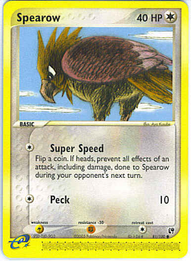 Evne2[C] Super Speed - Flip a coin. If heads, prevent all effects of an attack, including damage, done to Spearow during your opponent's next turn.