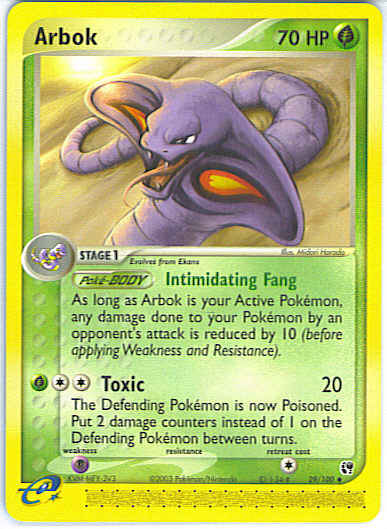 Type | Grass | Pokemon serie | Sandstorm | Stadie | Stage 1 | HP | 70 | Sjældenhed | Uncommon | Tilbagetrækning | 1 | Svaghed | P | Kortnummer | 29 | Evne | [CCG] Toxic (20) The Defending Pokemon is now Poisoned. Put 2 damage counters instead of one on the Defending Pokemon between turns.