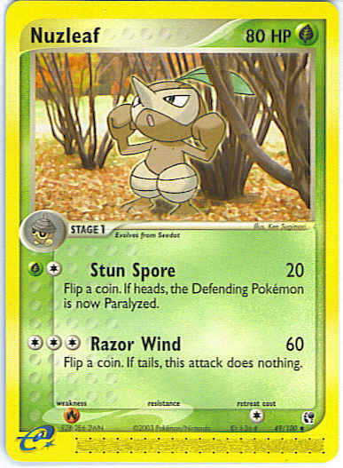 Evne2[CG] Stun Spore (20) Flip a coin. If heads, the Defending Pokemon is now Paralyzed.