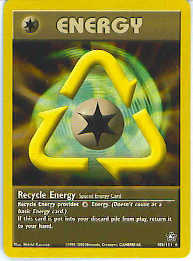 Evne Recycle Energy provides 1 Colorless Energy. (Doesn't count as a basic Energy card.) If this card is put into your discard pile from play, return it to your hand.