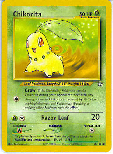Evne [C] Growl - If the Defending Pokemon attacks Chikorita during your opponent's next turn, any damage done to Chikorita is reduced by 10 (before applying Weakness and Resistance). (Benching or evolving either Pokemon ends this effect.)