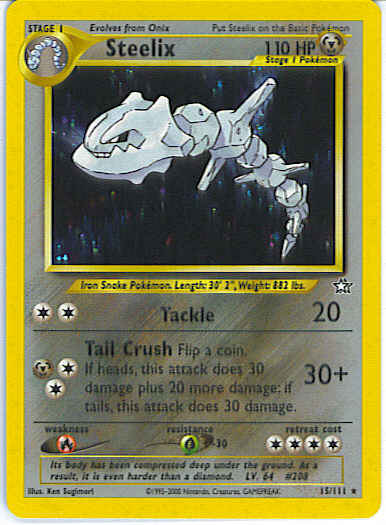 Type | Metal | Pokemon serie | Neo Genesis | Stadie | Stage 1 | HP | 110 | Sjældenhed | Rare | Tilbagetrækning | 4 | Modstand | G | Svaghed | R | Kortnummer | 15 | Evne |