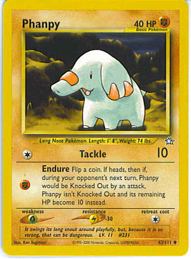 [F] Endure - Flip a coin. If heads, then if, during your opponent's next turn, Phanpy would be Knocked Out by an attack, Phanpy isn't Knocked Out and its remaining HP become 10 instead.