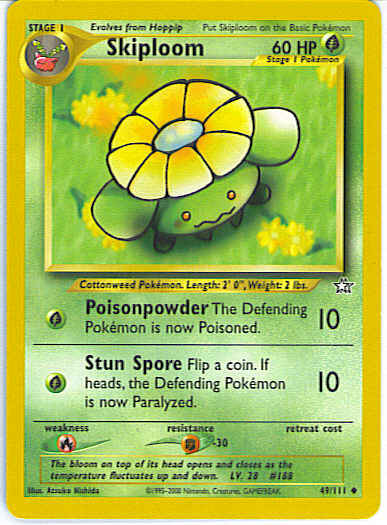 Type | Grass | Pokemon serie | Neo Genesis | Stadie | Stage 1 | HP | 60 | Sjældenhed | Uncommon | Modstand | F | Svaghed | R | Kortnummer | 49 | Evne |